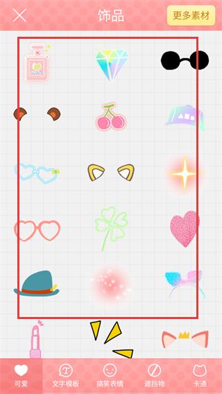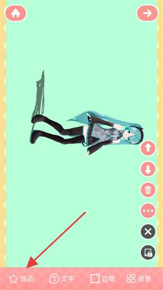 2、进入编辑页后,点击底部【饰品】选项,打开饰品素材库。