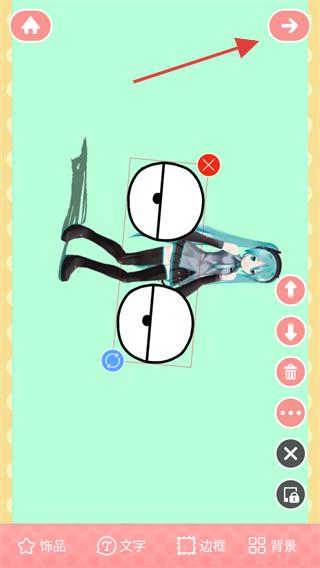 4、装饰完成后,点击右上角箭头按钮,即可保存或分享编辑好的图片。
